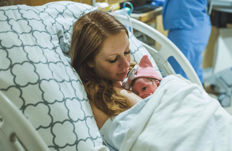 After they bonded for a while, he placed her on my chest for some skin-to-skin contact. I can’t even explain how magical that was, just holding her and loving her in real life, not in my belly. It was amazing.