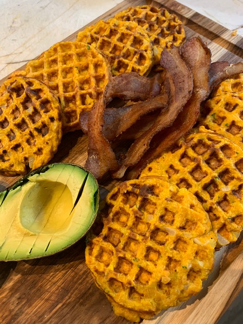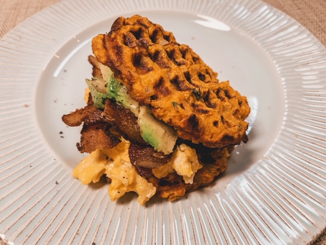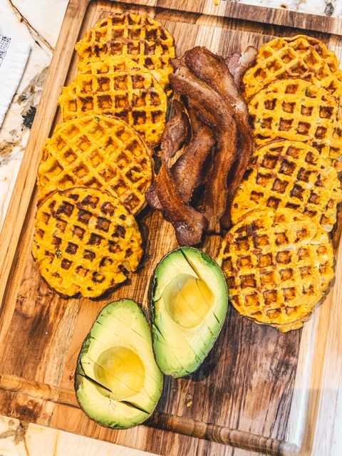 I love using these mini waffles as the base for a dope breakfast sammie, such as this bacon, egg, avocado and cheese babe below. I will also make a huge batch of these little guys and freeze them so they’re ready to go in the morning – just pop them in the microwave for 30 seconds, or toss in the toaster on the “bagel” setting.