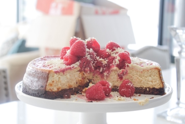 RECIPE: Gluten-Free Raspberry White Chocolate Cheesecake with a Buttery Macadamia Nut Crust